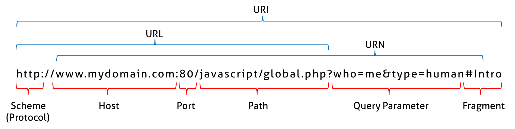 Protocol//Domain:Port/Path/Page?Parameter - URL은 리소스를 리소스의 경로 기반으로 식별하는 URI