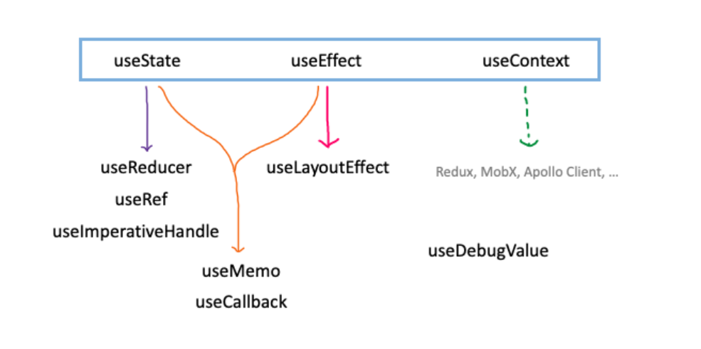기본적으로 컴포넌트 상태를 관리할 수 있는 useState와 컴포넌트 생애 주기에 개입할 수 있는 useEffect,