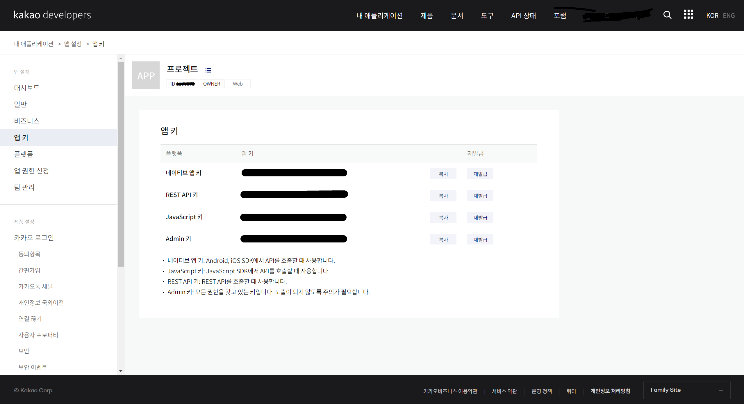 - 카카오 개발자 센터에서 새 애플리케이션 등록