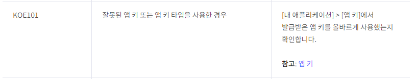친히 잘못된 앱 키 또는 앱 키 타입 이라고 나와있다.