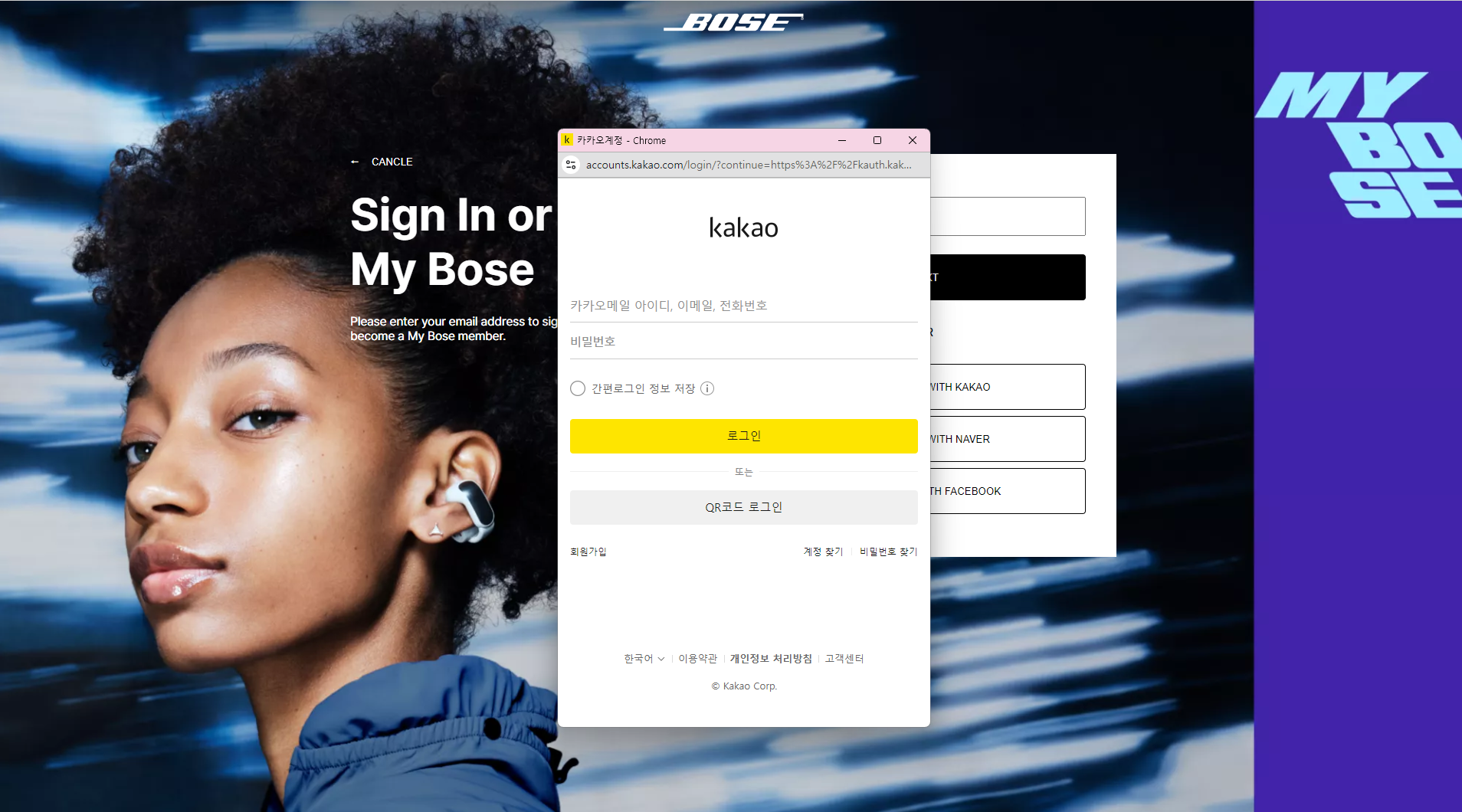 카카오 로그인 페이지가 잘 나왔다.